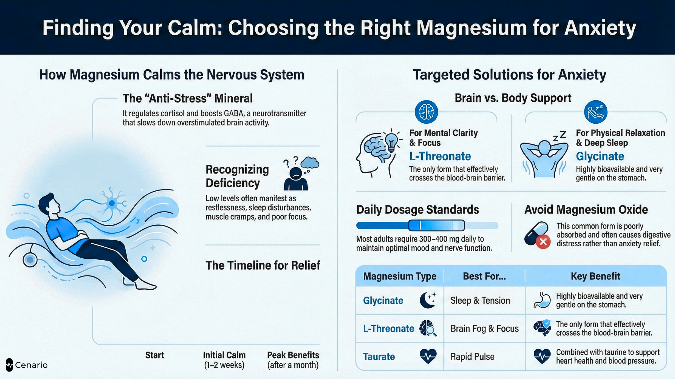 Avoid Magnesium Oxide: While common and inexpensive, magnesium oxide is poorly absorbed and often causes digestive discomfort. It’s not ideal for anxiety support.