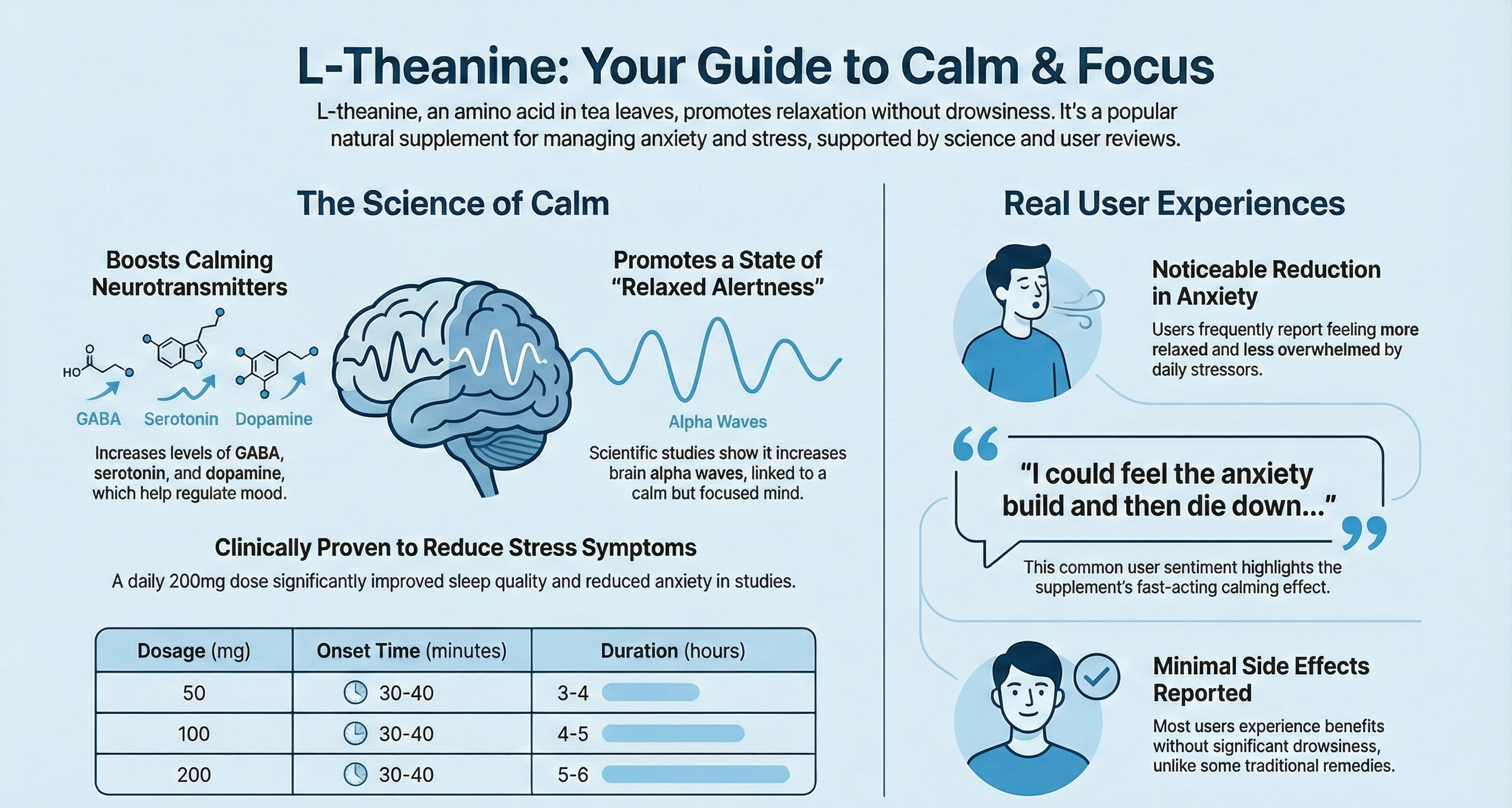 In summary, both user reviews and scientific studies provide compelling evidence for L-theanine’s role in managing anxiety and stress. Its unique mechanism of action and favorable safety profile make it a promising option for those seeking natural relief. As with any supplement, individual experiences may vary, so it is important to consider personal health needs and consult with professionals when necessary.