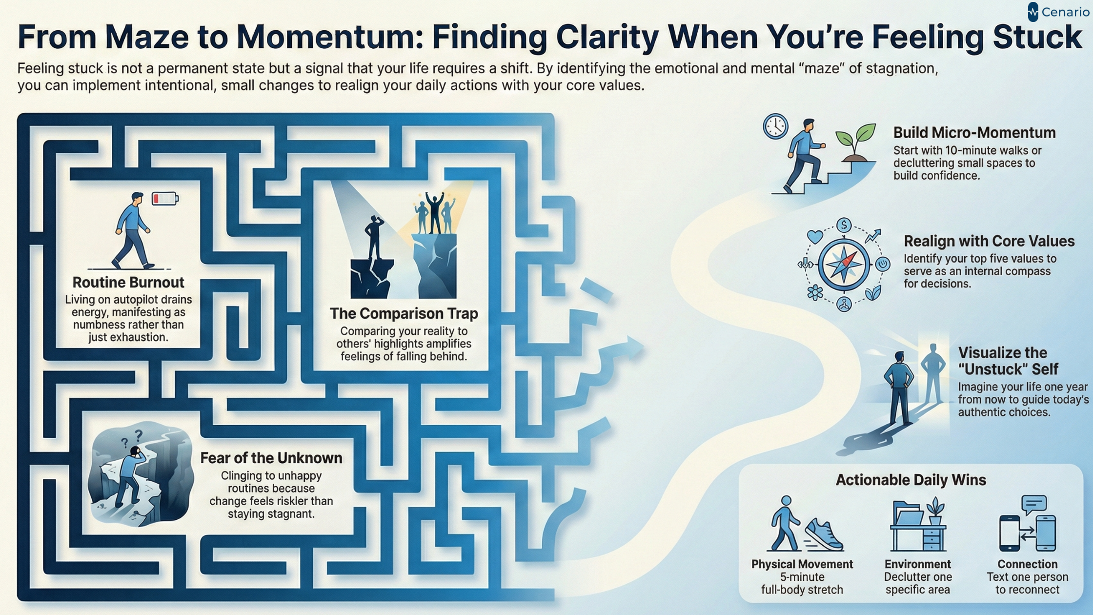 Whether you’re trapped in a job that no longer fulfills you, stuck in a stagnant relationship, or just spinning in circles within your own mind, this emotional “pause” can actually become a powerful starting point for growth. The key lies in understanding what’s behind the stuckness, and learning how to gently guide yourself forward while protecting your mental health.