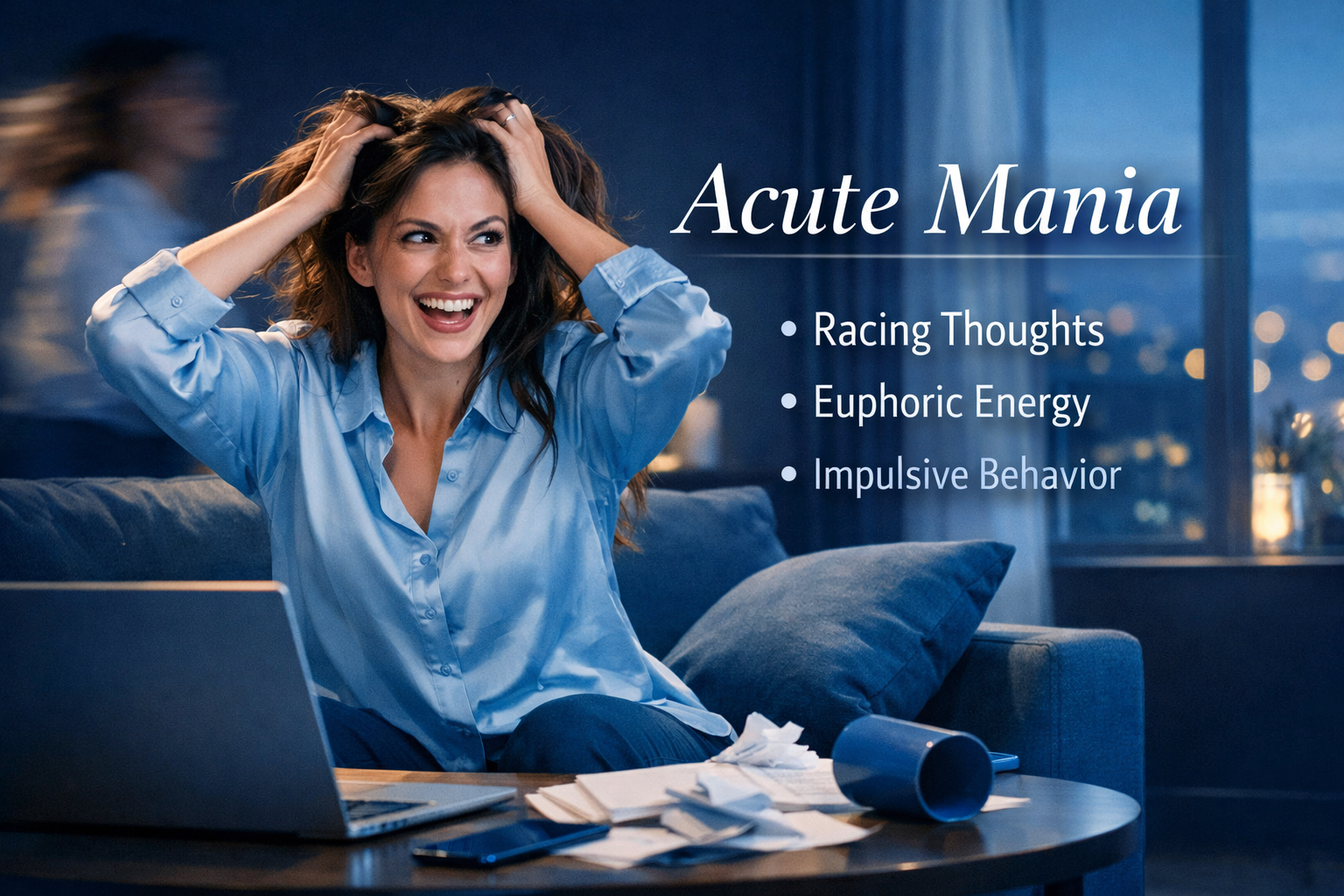 Have you ever seen someone suddenly develop boundless energy, a reduced need for sleep, and behavior that feels risky or completely out of character? This can be more than a mood swing. Acute mania is a severe and rapidly escalating state marked by extreme mood elevation or irritability, racing thoughts, and excessive activity that overwhelms a person’s ability to function safely.