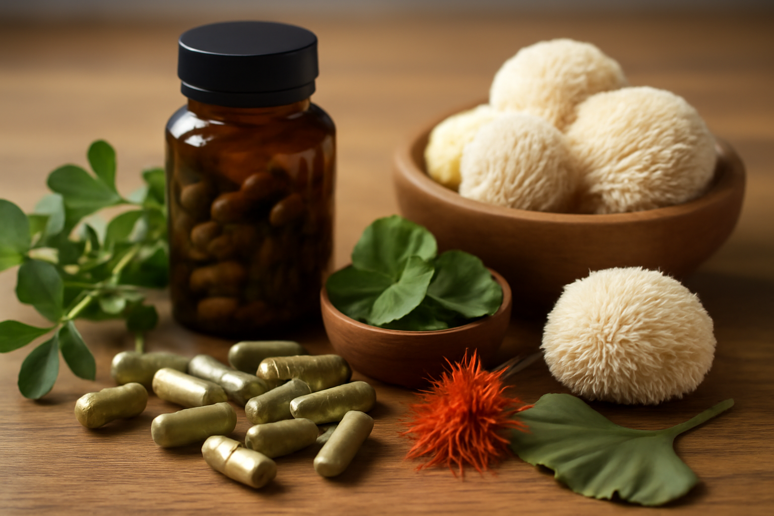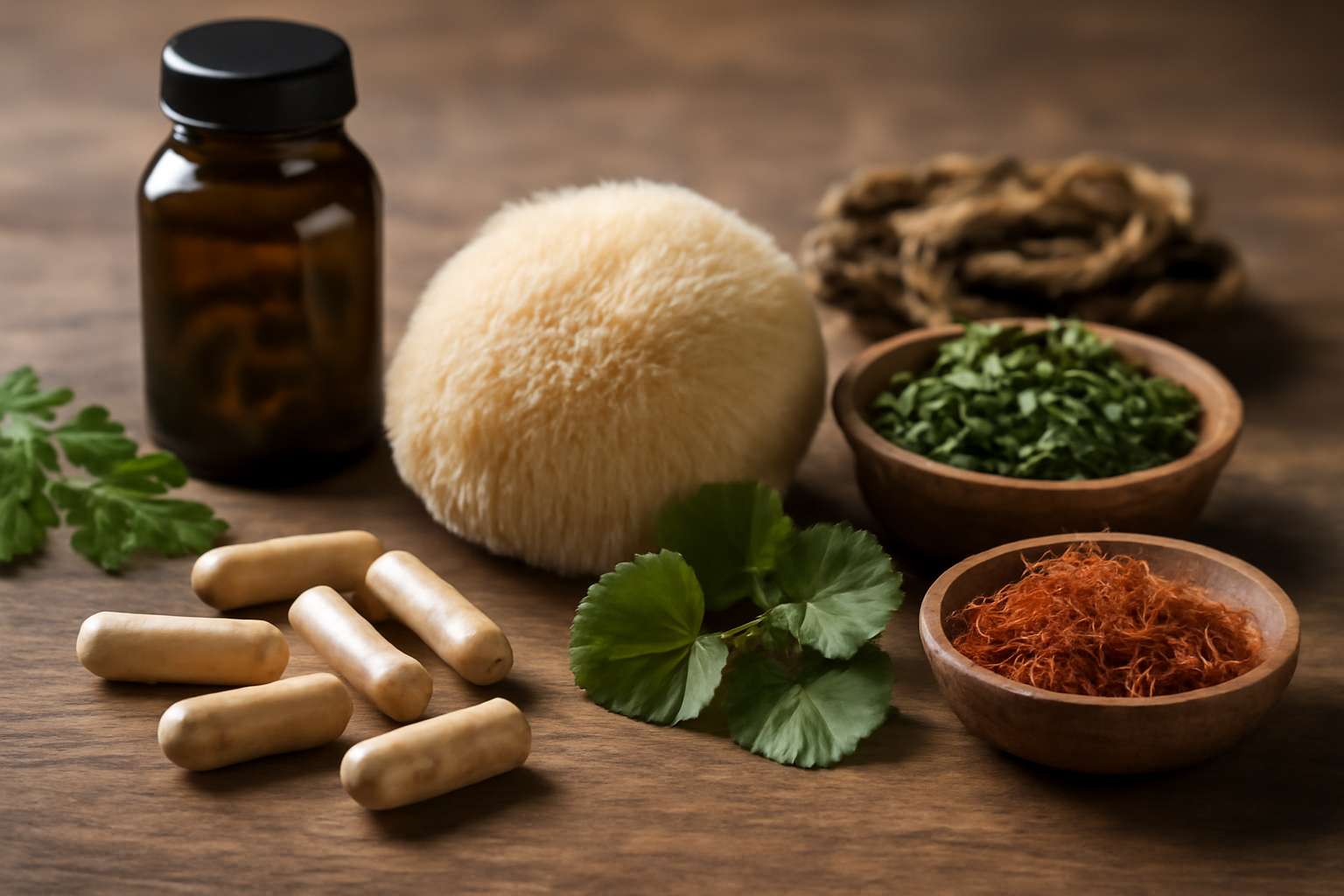 - Herbal nootropics and plant extracts: Traditional herbs and mushrooms that are used to support memory, learning, and nerve health.