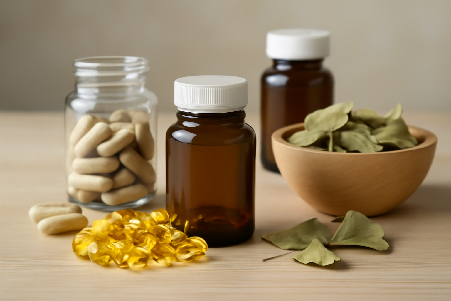- Ginkgo biloba — Several trials indicate modest improvements in working memory and processing speed in older adults, but effects are weaker or absent in healthy under-60 groups.