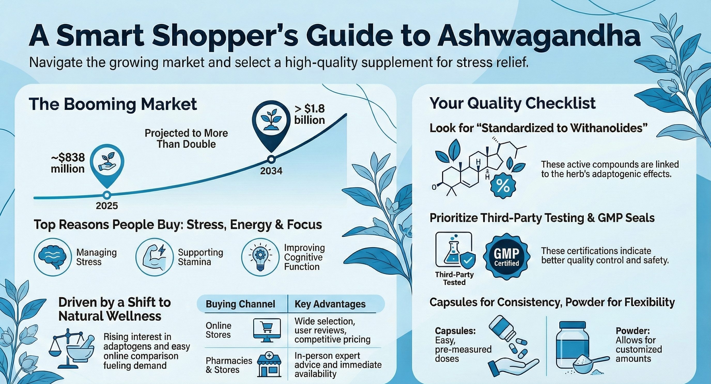 In the next section we will look at market trends and the most common applications of ashwagandha, plus practical tips for comparing online retailers and pharmacies when you decide to buy. Understanding the landscape now will save time and help you pick a high-quality supplement that fits your needs.