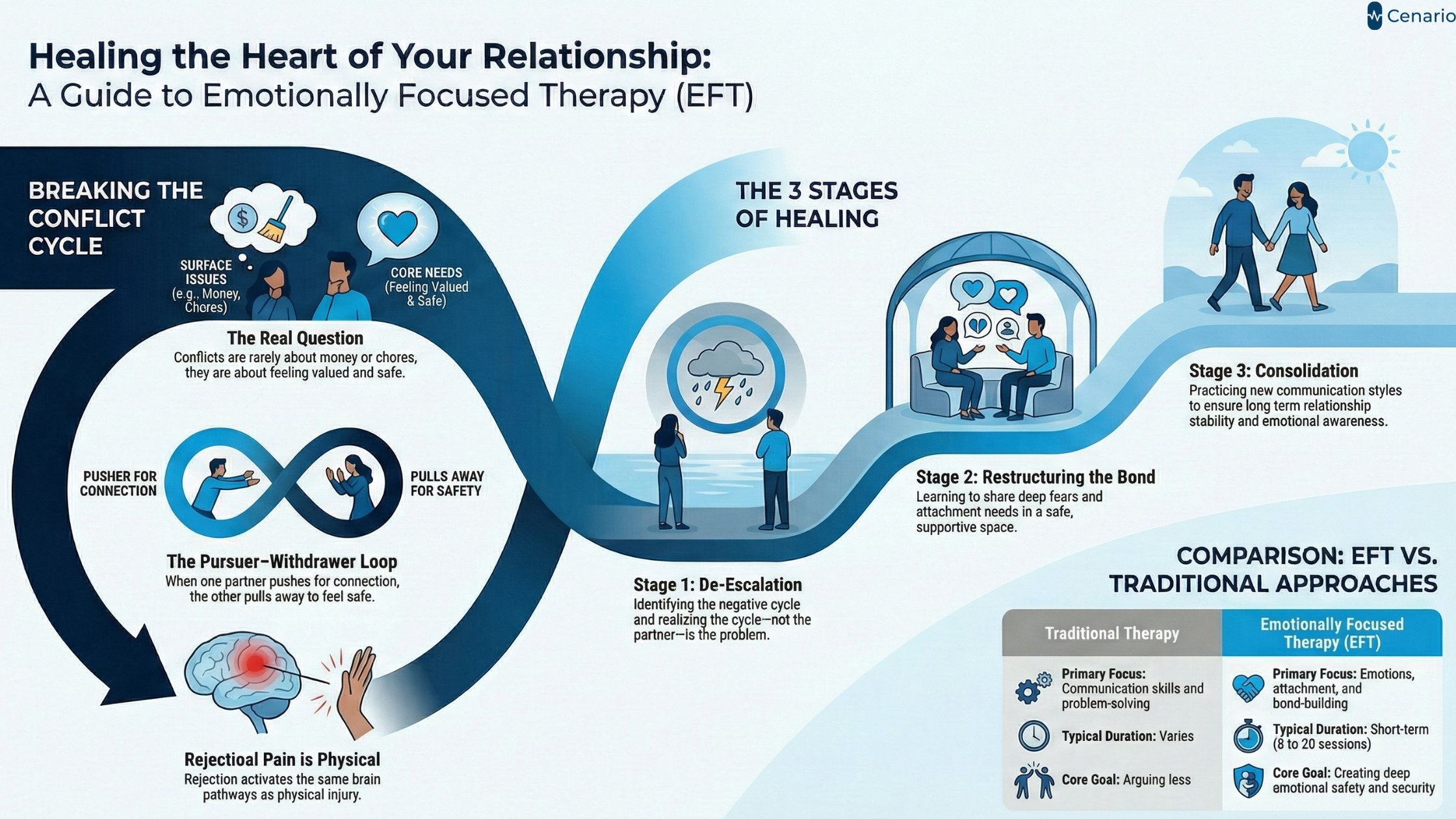 Many couples think they are arguing about things like money, time, or household chores. Emotionally Focused Therapy (EFT) shows that most relationship problems follow repeating emotional patterns, often called cycles.