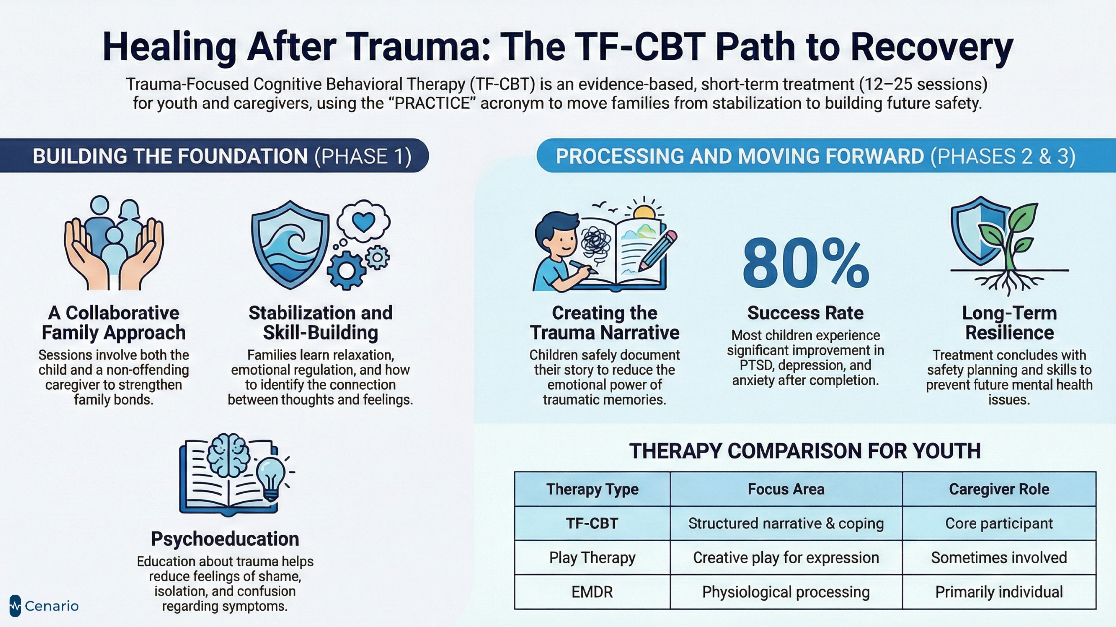 But there is hope. Mental health professionals have developed effective, evidence-based treatments to support healing. Among the most successful of these is Trauma-Focused Cognitive Behavioral Therapy (TF-CBT), a structured, short-term, and highly effective treatment model specifically designed for young people dealing with the aftermath of trauma.